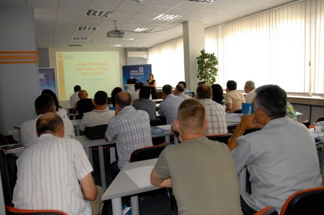 Tokom jednodnevnog treninga prisutni su imali priliku da se upoznaju sa bitnim elementima novog sistema. Predavači su kroz svoja izlaganja predočili pravni, tehnološki i ekonomski aspekt sistema javnih skladišta, sa ciljem da prisutnima ilustruju na koji način sistem funkcioniše i koje benefite donosi.